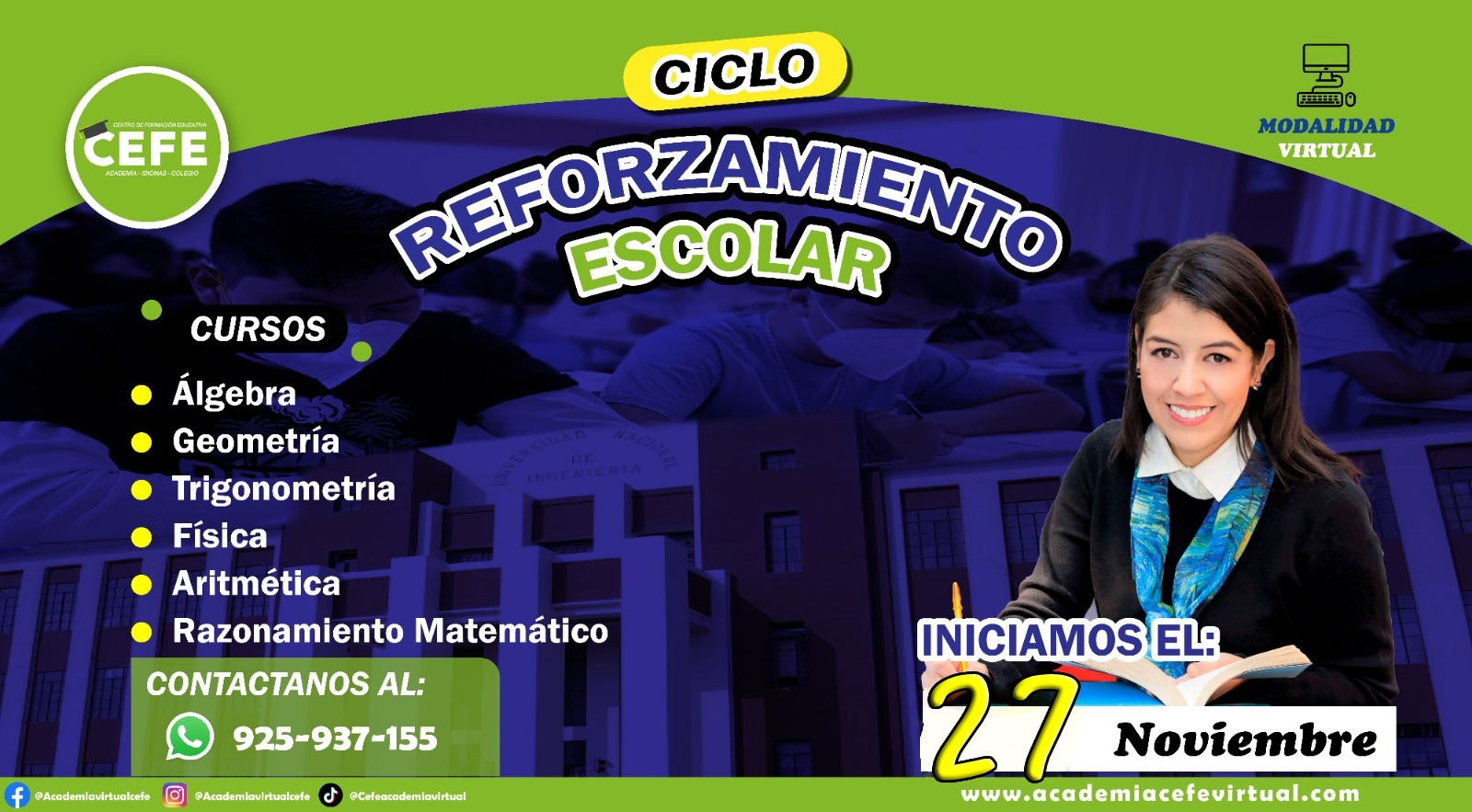 Te preparamos para que logres tu ingreso a la Universidad con sesiones grabadas y con clases en vivo por internet , con CEFE estas en casa como también estas en clase. Te preparamos para que logres tu ingreso a la universidad y reforzamiento escolar.